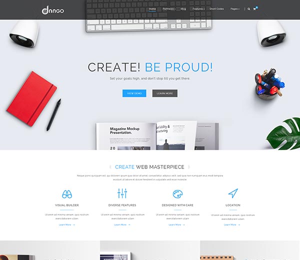This theme offers you a lot of useful built-in shortcodes, which will allow you to quickly and easiliy create nice page styles even you don't know anything about code. The shortcodes include: Pricing, ProgressBars Counters, Testimonials, Responsive Tabs, Accordions, Quotes, Dropcaps, CSS3 Animation, Dropdowns, Popovers, Alerts, Tooltips, Carousel, Image Effects, Flip Box, LightBox, Video BG, Responsive Video and Video Bg.