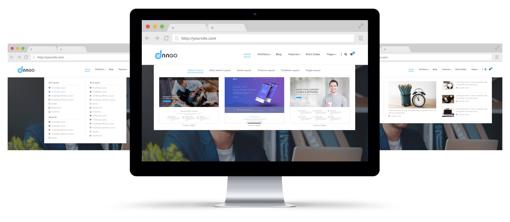 This theme includes 6 different, nice, friendly and responsive Blog designs , you can obtain different themes with one click. There are one column, two columns, full width and Timeline display styles included.